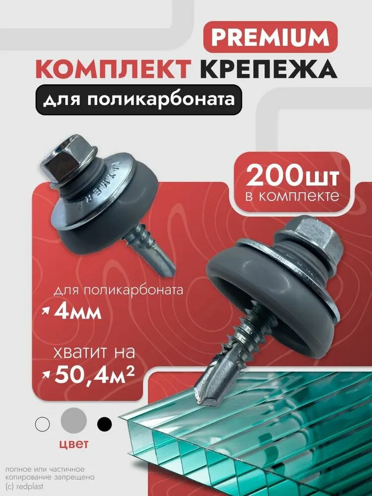 Набор крепежа для поликарбоната 4 мм (200 шт) Саморез и Шайба серая: сравнение цен, характеристики, фото, актуальное наличие и цены.