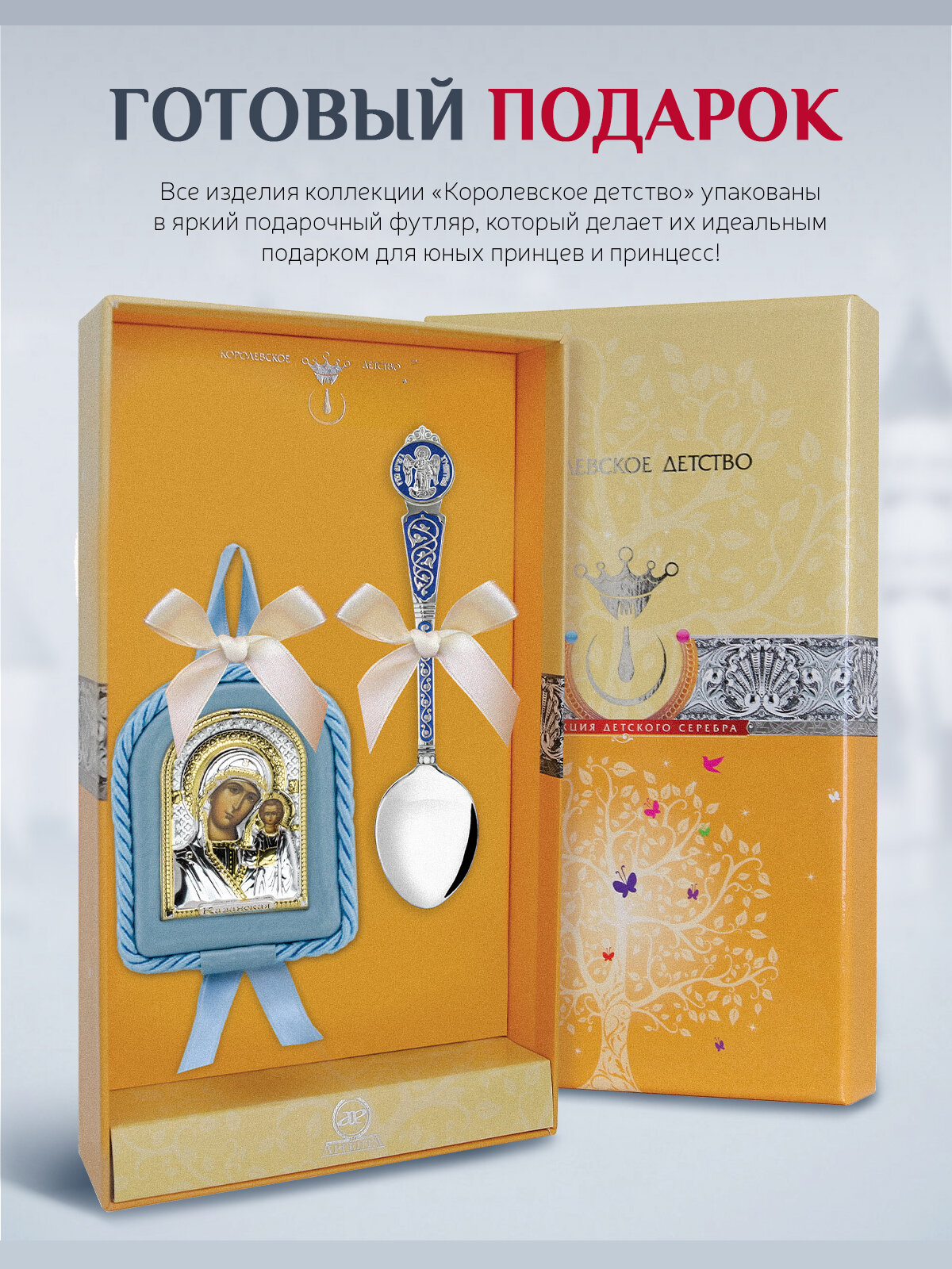 Купить Набор крестильный подарочный Аргента «Казанская Божья матерь» 2 предмета для мальчика в футляре с доставкой по всей России.