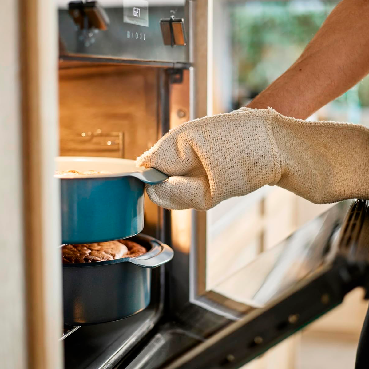 - При работе с горячей посудой всегда пользуйтесь защитными перчатками и дайте ей остыть перед чисткой.
