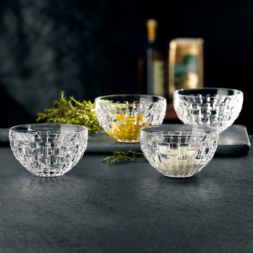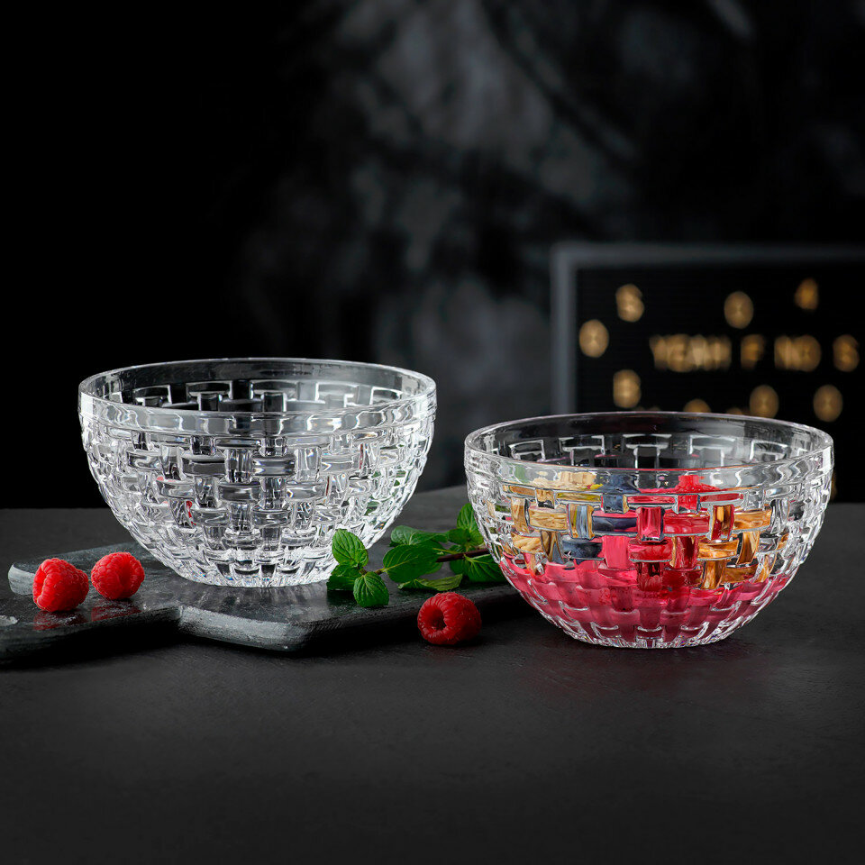 Набор салатников понравится ценителям изящных линий и будет прекрасным украшением праздничного стола. Коллекция посуды Bossa Nova имеет неповторимый дизайн из причудливых кристаллов в форме квадратов, создающих плетеный орнамент и отвечает самым высоким требованиям. Как и все изделия Nachtmann, салатники отличаются долговечностью, высокой устойчивостью к царапинам и сколам. Можно мыть в посудомоечной машине.
