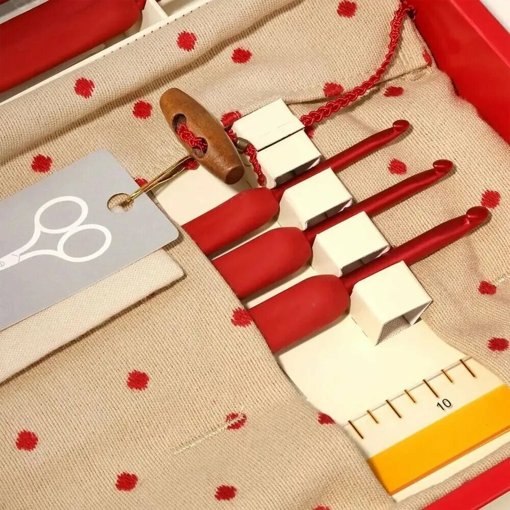 Набор крючков для вязания "ETIMO Red" (в наборе: органайзер, крючки (1,8мм, 2мм, 2,2мм, 2,5мм, 3мм, 3,5мм, 4мм, 5мм, линейка, иглы гобеленовые - 2шт), алюминий/пластик, красный, 8 видов крючков в наборе