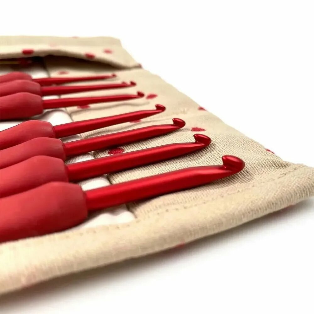 Набор крючков Tulip Etimo Red, в который входит 8 вязальных крючков размерами от 1.8 мм до 5.0 мм. ETIMO Red - это новинка в серии крючков ETIMO! Эти крючки премиального качества с эргономичной ручкой имеют гладкий металлический кончик, который позволяет легко зацепить и протянуть нить. Крючки удобно держать благодаря ручке, которая естественно ложится в руку. Мягкая ручка дает руке ощущение комфорта и удобства, поэтому во время вязания рука не устает. Матовые красные тона головки крючка не отражают свет и мягко воздействуют на глаза.