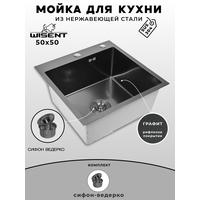 Мойка для кухни нержавеющая 50х50, рифленая, с PVD покрытием графит. Сифон с ведерком.: сравнение цен, характеристики, фото, актуальное наличие и цены.
