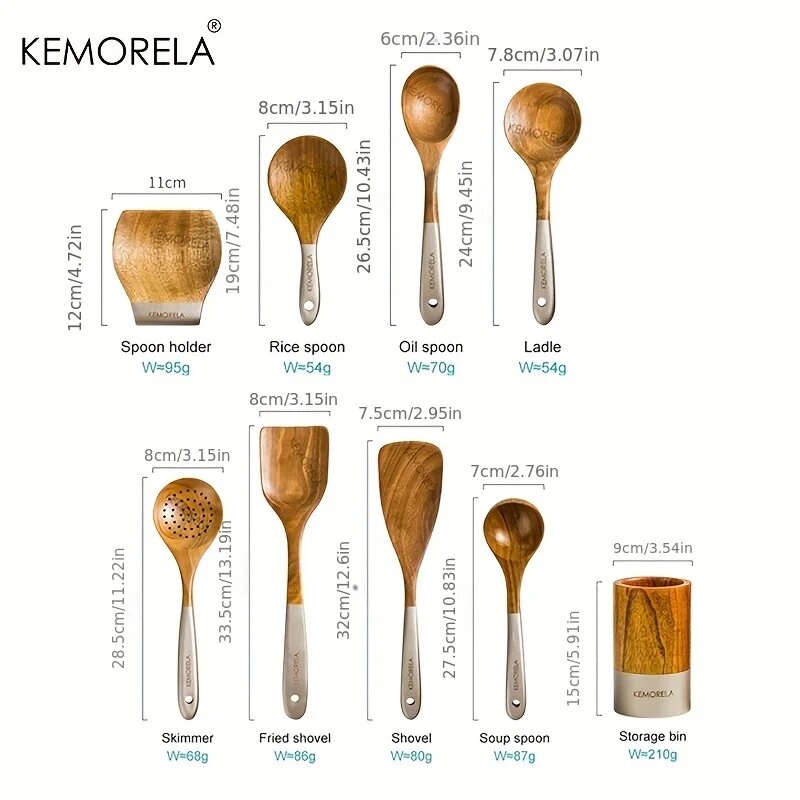 конструкция без царапин: Наш набор деревянной кухонной утвари изготовлен из плотнозернистой твердой древесины высшего качества с высоким содержанием органического масла и кремнезема, который известен тем, что является одной из самых твердых, прочных и долговечных из всех древесинок. Красиво изготовленные, мягкие на ощупь, легкие и очень прочные, в основном определяют эти наборы деревянных ложек для приготовления пищи. Теперь вы можете использовать свою драгоценную посуду с антипригарным покрытием, не беспокоясь о повреждениях и царапинах.