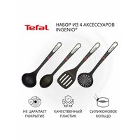 Набор аксессуаров для кухни Tefal Ingenio K206S414. Tefal Ingenio- это новая серия аксессуаров для кухни, разработанная с учетом всех ваших потребностей при приготовлении любых блюд. Стильная, стойкая к загрязнениям и простая в уходе, она является безопасной для антипригарного покрытия и не содержит вредных веществ. Каждый предмет снабжён удобной нескользящей ручкой с отверстием для хранения на крючке и специальным упором для крепления на краю кастрюли. Можно мыть в посудомоечной машине.
