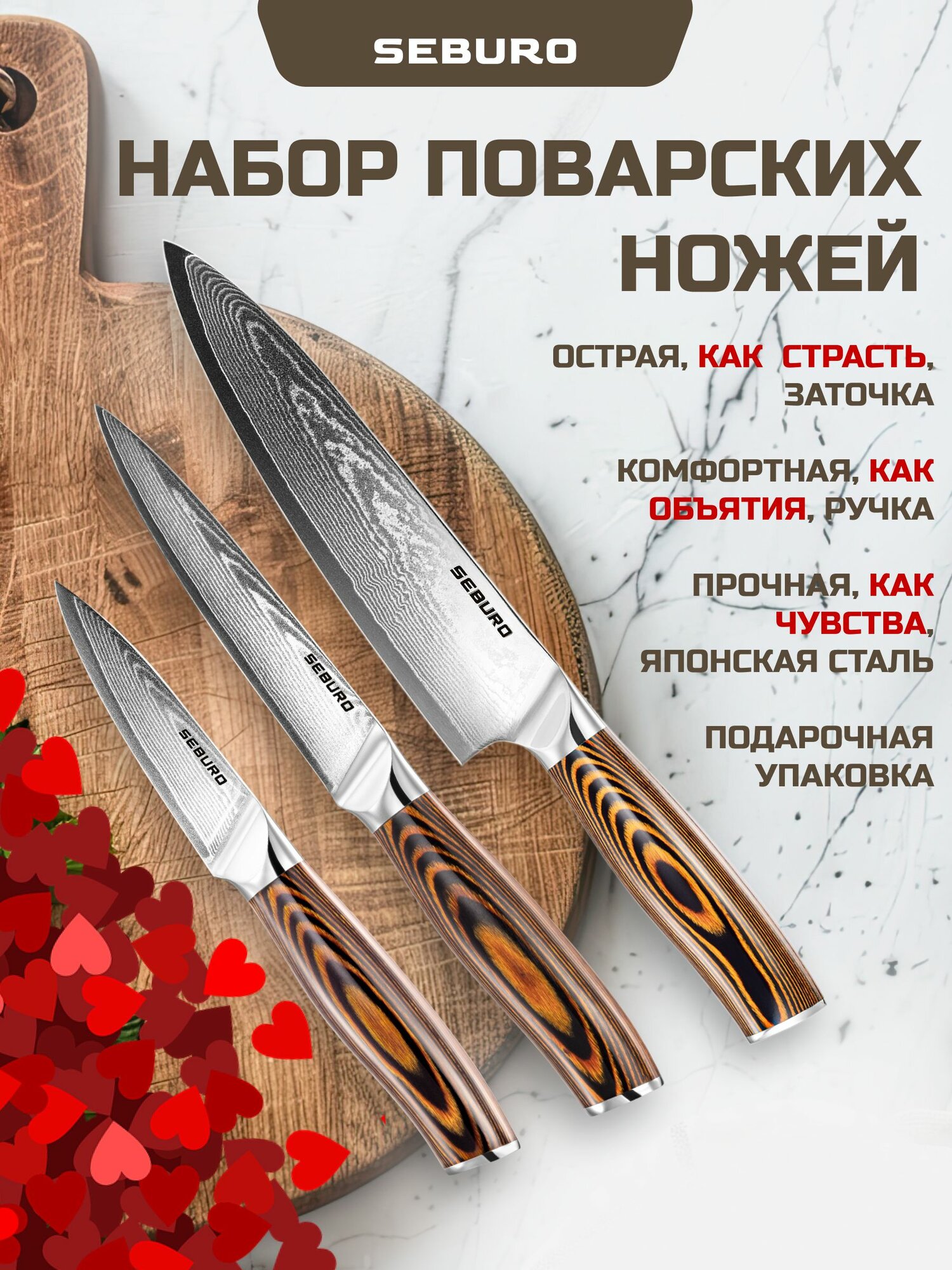 SEBURO также предлагает превосходную упаковку для своих ножей, что делает их отличным подарком для любителей кулинарии.