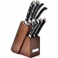 Состав набора (длина лезвия, толщина лезвия): нож поварской 20 см, 2,3 мм нож для сантоку 15 см, 2,3 мм нож универсальный 12,5 см, 1,8 мм (2 шт) нож для чистки 9 см, 1,8 мм ножницы 25 см, 3,8 мм подставка