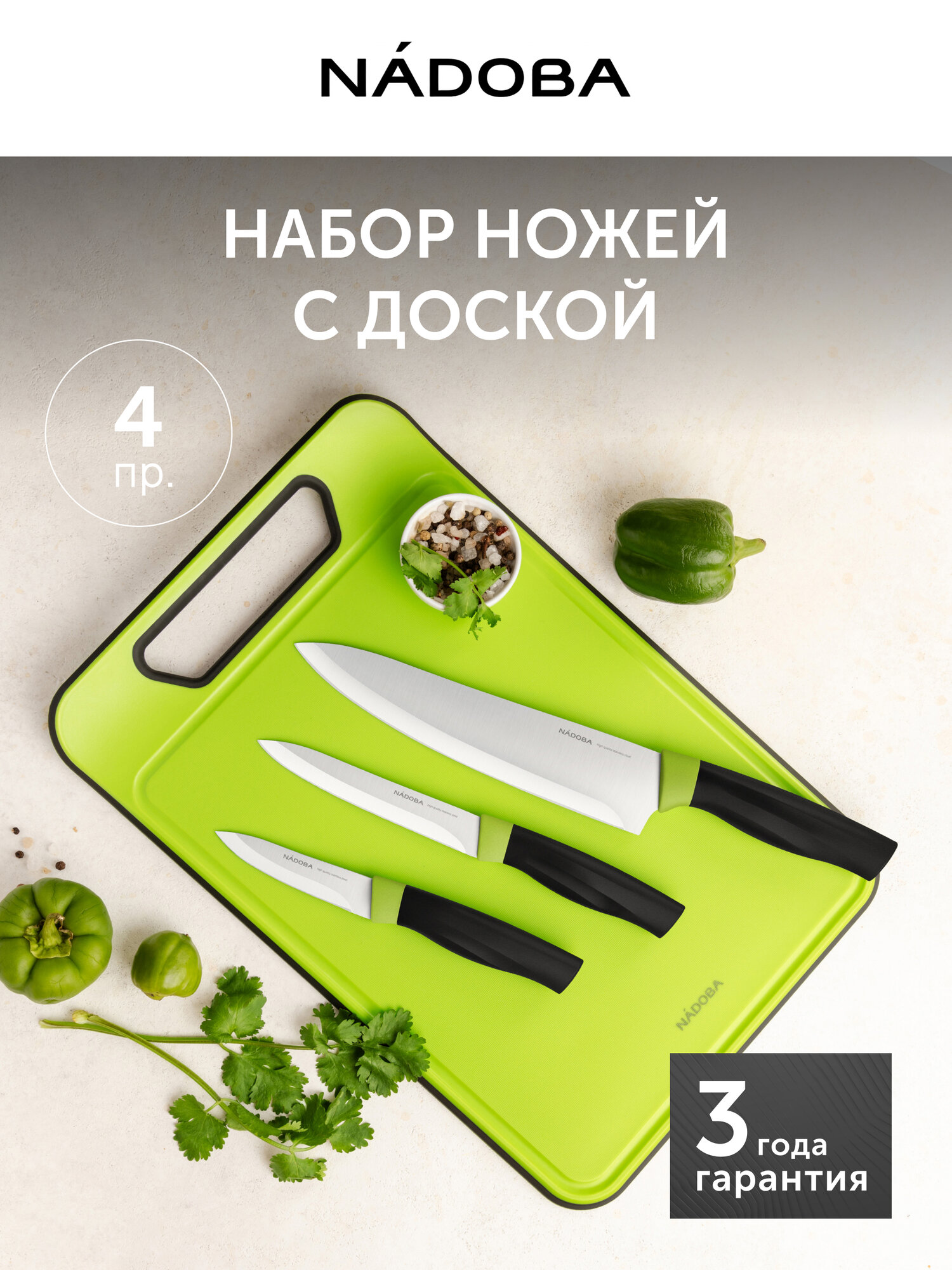 Купить Набор кухонных ножей с разделочной доской NADOBA, серия OLIVIA, 4 предмета, нержавеющая сталь, подарочная упаковка с доставкой по всей России. Набор кухонных ножей с разделочной доской NADOBA, серия OLIVIA, 4 предмета, нержавеющая сталь, подарочная упаковка: сравнение цен, характеристики, фото, актуальное наличие и цены.