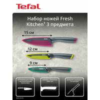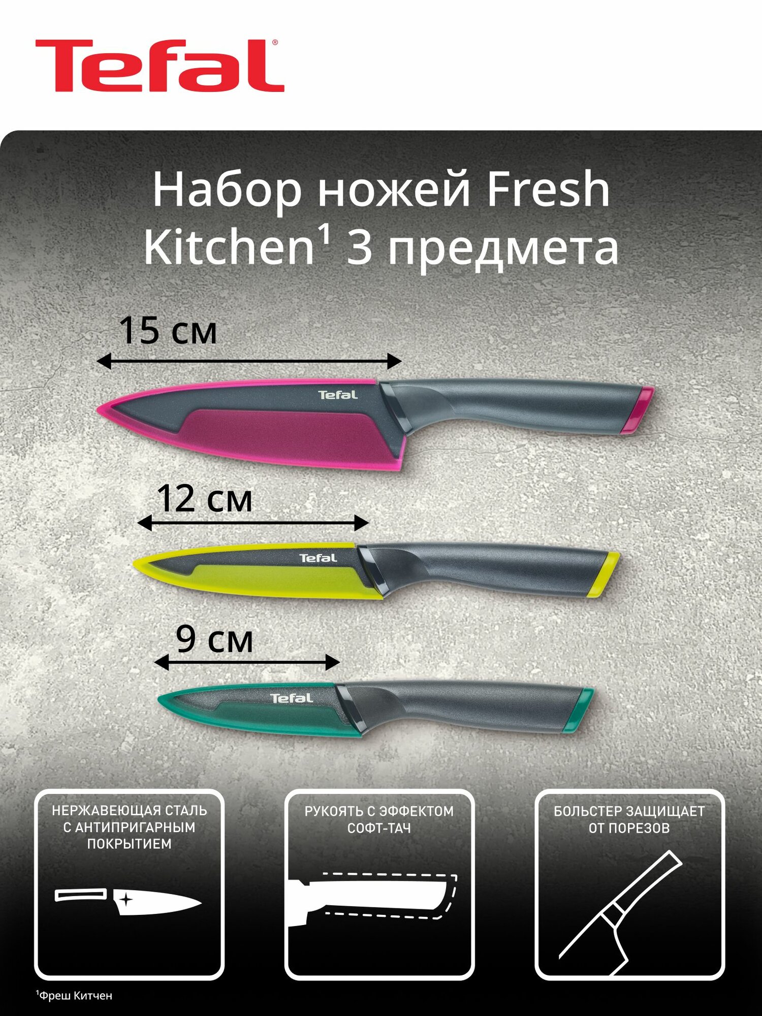 Набор ножей Tefal Fresh Kitchen K122S355, 3 предмета, 15/12/9 см, нержавеющая сталь, антипригарное покрытие, ручка софт-тач, чехол: сравнение цен, характеристики, фото, актуальное наличие и цены.