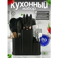 Купить Набор кухонных принадлежностей, 30 элементов, бамбук/силикон, цвет черный с доставкой по всей России. Набор кухонных принадлежностей, 30 элементов, бамбук/силикон, цвет черный: сравнение цен, характеристики, фото, актуальное наличие и цены.