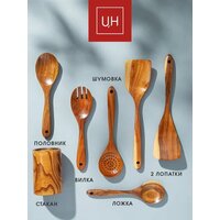 Набор кухонных принадлежностей UR HOME, 7 предметов, деревянные лопатки с подставкой стакан, кухонная утварь: сравнение цен, характеристики, фото, актуальное наличие и цены.