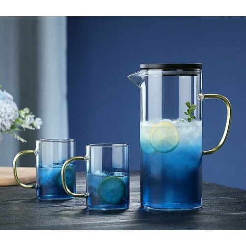 Купить Набор «Кувшин с 4 мя стаканами» прозрачно-голубого цвета из боросиликатного стекла с доставкой по всей России. Набор «Кувшин с 4 мя стаканами» прозрачно-голубого цвета из боросиликатного стекла: сравнение цен, характеристики, фото, актуальное наличие и цены.