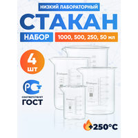 Набор лабораторных стаканов 1000, 500, 250, 50 мл (тип Н, низкий с делениями и носиком, термостойкий): сравнение цен, характеристики, фото, актуальное наличие и цены.