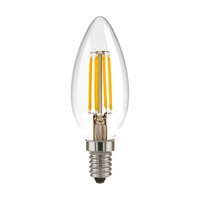 Комплект - 5 шт. Филаментная светодиодная лампа "Свеча" C35 7W 3300K E14. Это вид светодиодных ламп, которые внешне максимально приближены к лампам накаливания. Они имеют полностью прозрачную стеклянную колбу и цоколь, а внутри расположены светодиоды вместо нити накала. Филаментная светодиодная лампочка с цоколем E14 и размерами 98 мм по высоте и диаметром 35 мм обладает мощностью в 7 W. Цветовая температура – 3300 К, т. е. теплый свет близкий к цвету Солнца. Ориентировочный срок службы составляет 50000 ч. Изделие рассчитано на использование в сети с переменным напряжением в 1700-240 В.