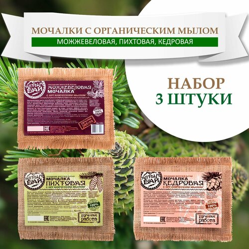 Мочалка льняная с органическим мылом «кедровая»