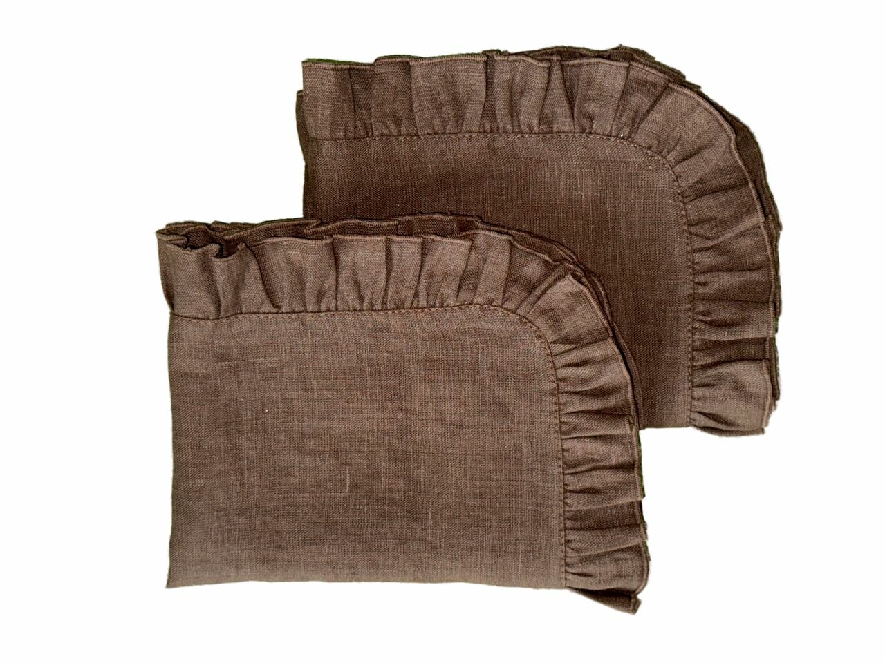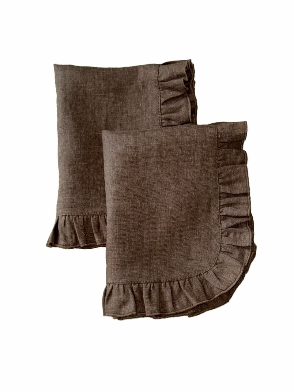 Набор льняных салфеток с рюшами 2 шт. 35x45 см Цвет: Шоколад