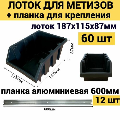 Набор лотков для метизов 60шт черные №3 187х115х87мм + планка алюминий 600мм 12шт: сравнение цен, характеристики, фото, актуальное наличие и цены.