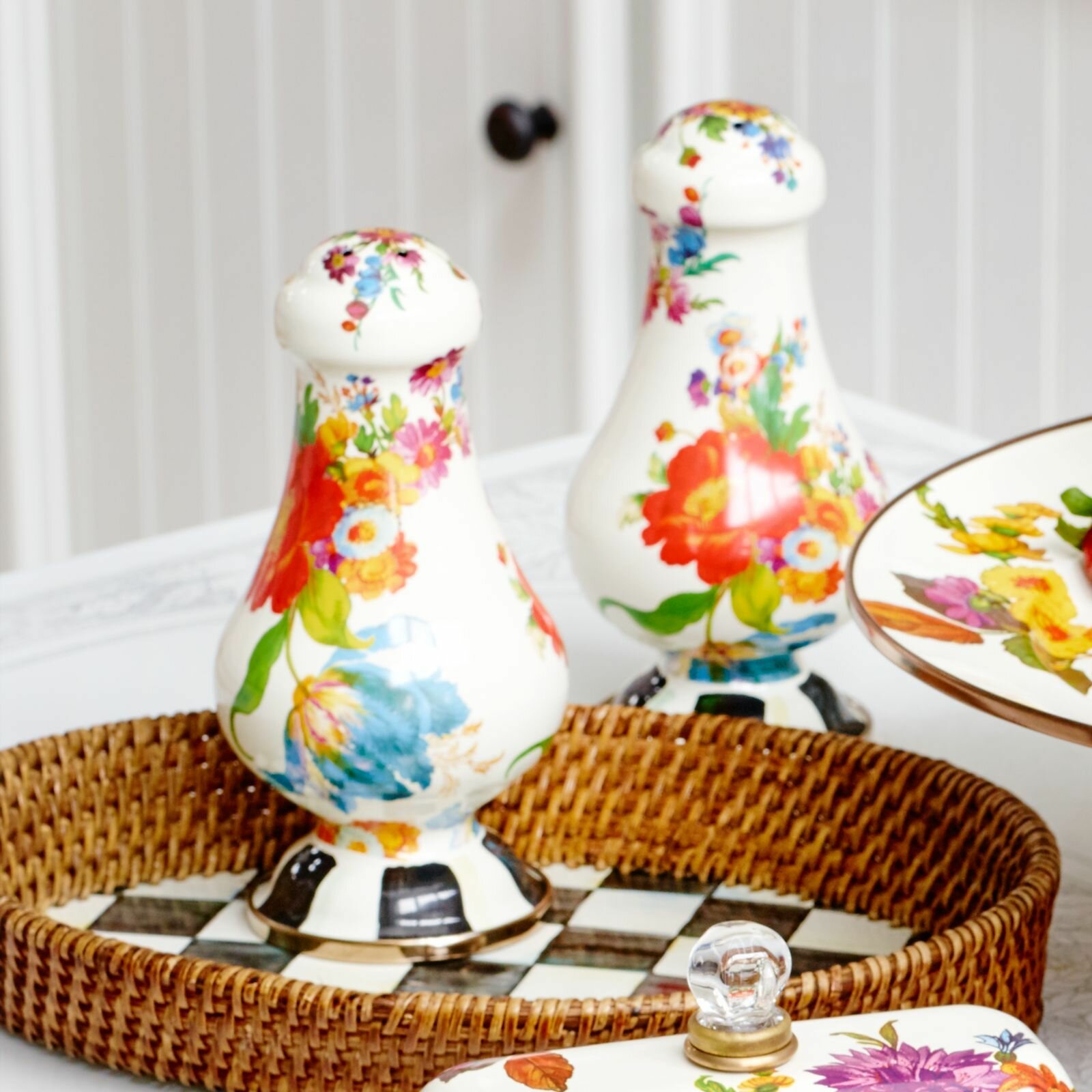 Набор солонка/перечница большой Flower Market от MacKenzie-Childs. Ассортимент посуды Flower Market Mackenzie Childs привлекает внимание уникальным шармом цветочного дизайна. Созданная из материалов высокого качества, покрытая глянцевой эмалью и расписанная вручную, с антикварными акцентами, посуда Flower Market придаст вашему дому приятное ощущение винтажа. Набор солонка/перечница обладает всей элегантностью коллекции Flower Market, с добавленной функциональностью и практичностью на каждый день. Когда вас попросят, например, "передайте соль и перец, пожалуйста", а это обязательно произойдет, убедитесь, что приготовили ваши ароматные специи заранее.