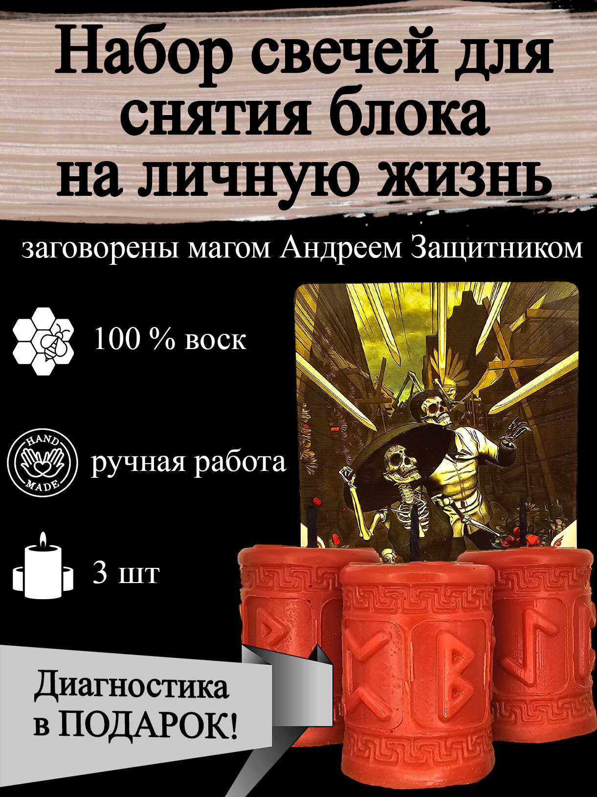 Набор магических ритуальных свечей для снятия блока на личную жизнь с рунами 3 шт, из воска с оговором, оговорённые, риутальные, рунические, готовый ритуал: сравнение цен, характеристики, фото, актуальное наличие и цены.