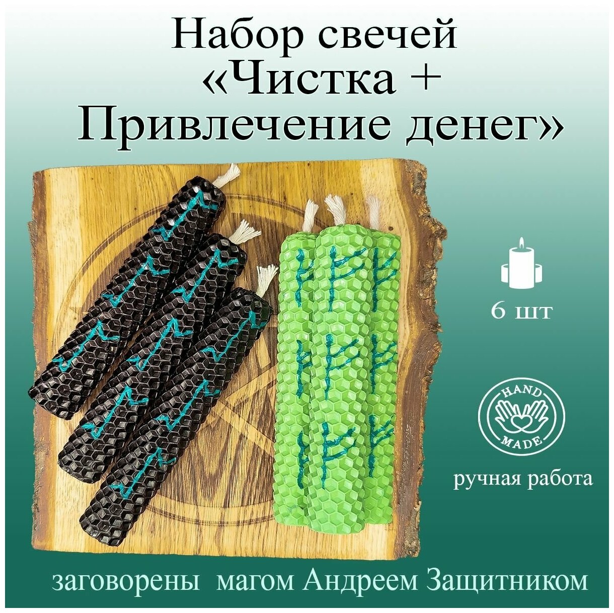 Набор Магических свечей "Чистка + Привлечение денег" с рунами "Феху" и "Квеорт" с оговором.