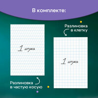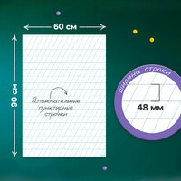 Набор включает в себя 2 разлиновки для школьной доски из гибкого магнита. Размер каждой – 90х60 см. Одна поверхность с разметкой в клетку (размер клетки 5*5 см). Вторая - с разметкой в частую косую линию (высота строки до вспомогательной пунктирной линии – 48 мм) Поверхность «Пиши-стирай» позволяет использовать разлиновки многократно. Писать необходимо исключительно маркером на водной основе (в комплект не входит). Стереть такую надпись вы сможете любой сухой или чуть влажной губкой, тряпкой или салфеткой. Для того, чтобы полотно прослужило вам долго, пожалуйста, внимательно изучите инструкцию по эксплуатации. Поставляется разлиновка в транспортировочной коробке из плотного картона.