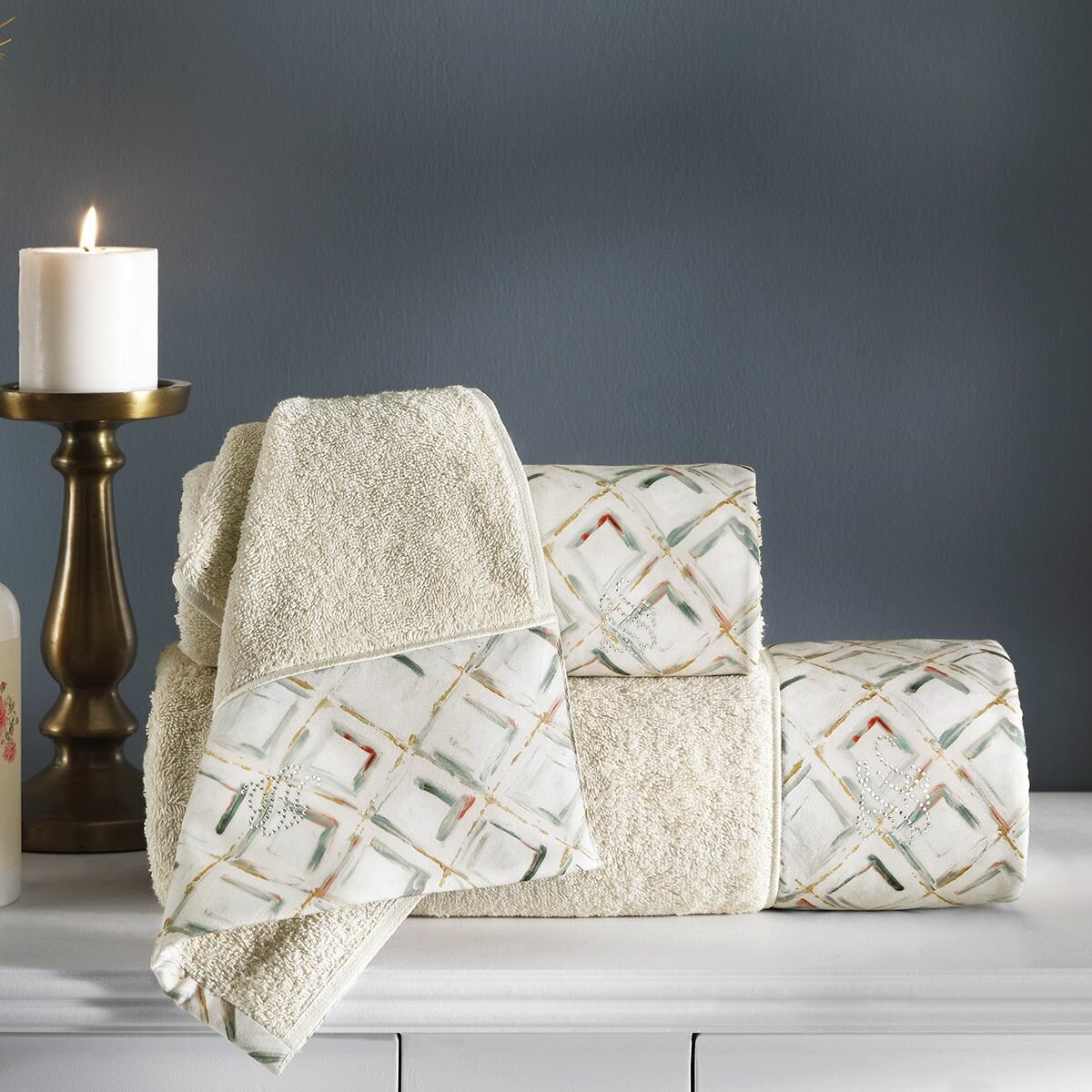 Геометрический рисунок на полотенцах придает им стильный и современный вид.