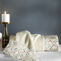 Комплектация набора включает в себя лицевое полотенце размером 75х150 см и банное полотенце такого же размера.