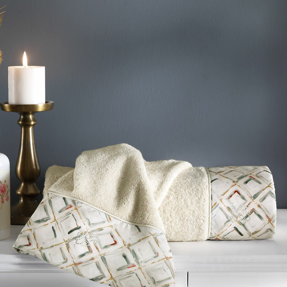 Отделка полотенец выполнена вышивкой и стразами, что делает их не только функциональными, но и стильными аксессуарами для вашего дома.