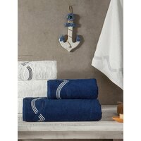 Набор полотенец Tivolyo Home Cross выполнен в темно-синем цвете с белой полоской, что придает ему стильный и современный вид. Отделка вышивкой добавляет изысканности и подчеркивает индивидуальность каждого полотенца.