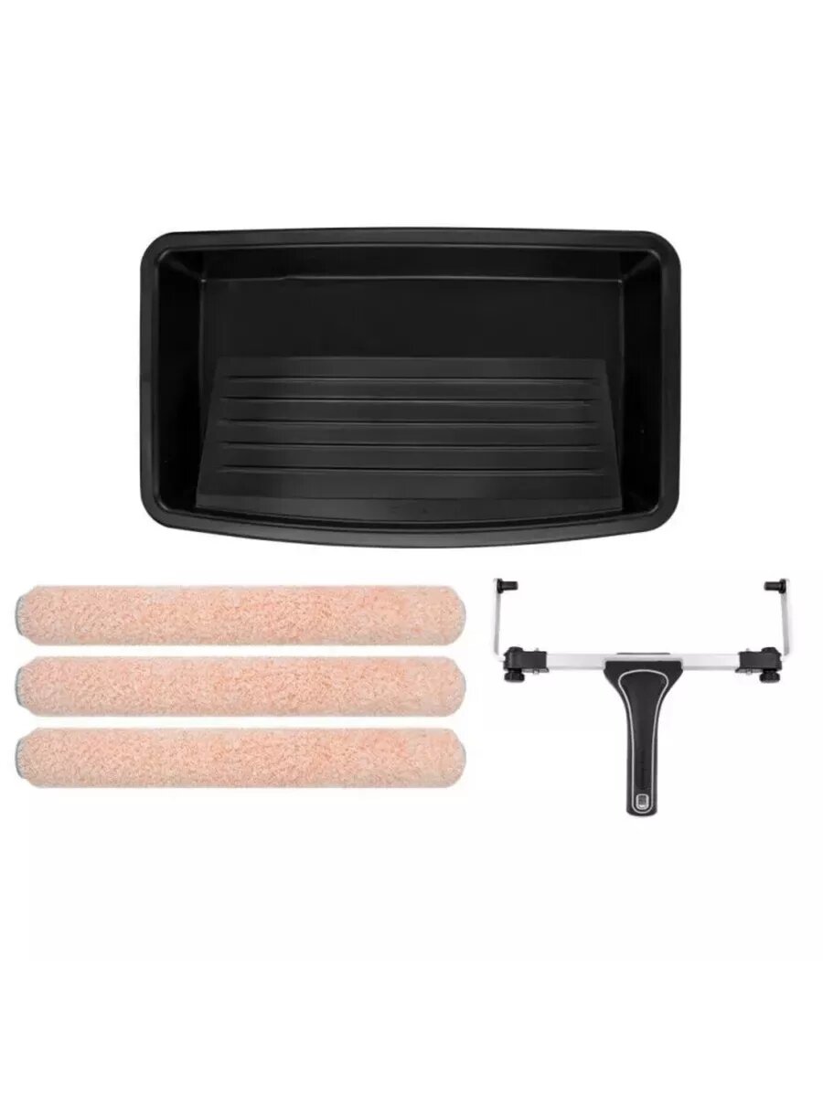 Профессиональный набор для быстрой покраски потолков, стен. Большой малярный валик Rollingdog SUPER-MICRO 457мм, с ворсом 9.5 мм, предназначенный для работы с каркасом диаметром 38 мм (торцевые заглушки в комплекте), изготовленный из микрофибры. Микрофибра валиков изготовлена из крошечных волокон размером примерно 1/5 человеческого волоса. Это позволяет максимально удерживать краску на поверхности, а также обеспечивает гладкое и равномерное нанесение. Повышенная износостойкость, можно мыть и использовать повторно. Не ворсит. Низкий уровень брызг. Предназначен для работ с потолками и стенами. Подходит для всех видов краски.