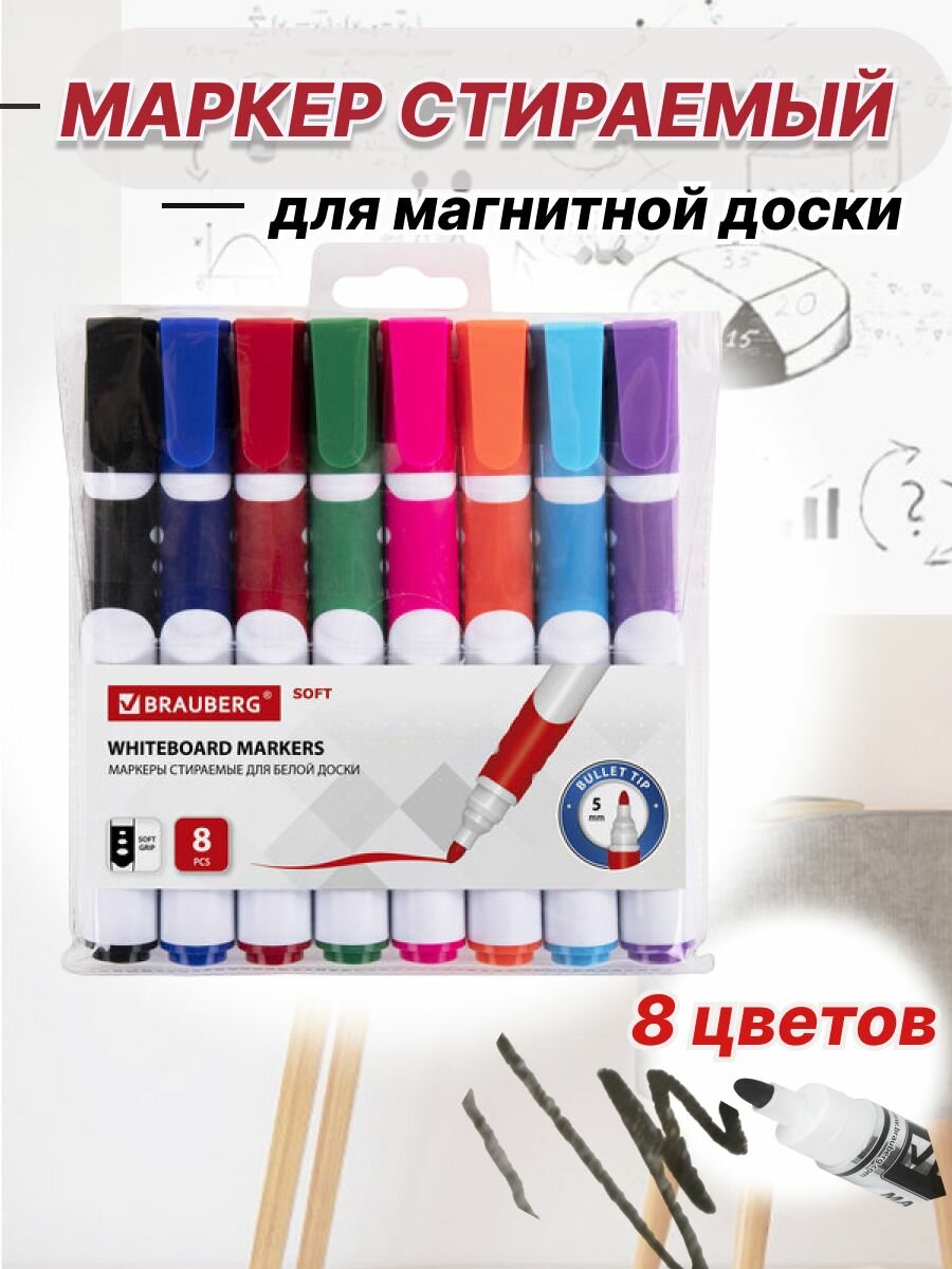 Набор маркеров BRAUBERG SOFT, для досок, спиртовые чернила, 8 цветов, толщина линии 3,5 мм: сравнение цен, характеристики, фото, актуальное наличие и цены.