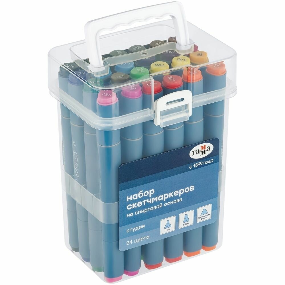 Купить Набор маркеров для скетчинга Гамма двусторонние, «Студия», 24 цвета, основные цвета, корпус трехгранный, наконечники, пластиковый кейс (1204P_24) с доставкой по всей России.