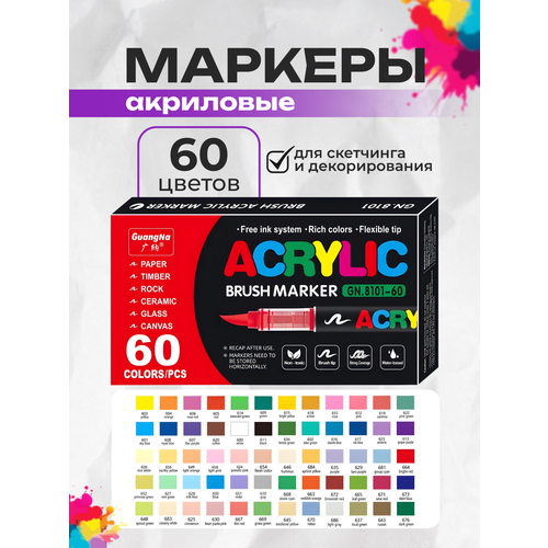 Акриловые маркеры на водной основе Guangna — это универсальный инструмент для творчества и дизайна. В наборе представлены 60 ярких и насыщенных цветов, которые позволяют воплотить самые смелые идеи и создать неповторимые произведения искусства. Благодаря своей водной основе маркеры безопасны для использования и нетоксичны, что делает их идеальными для детей и взрослых. Эргономичный четырёхгранный корпус маркеров обеспечивает комфортное использование и предотвращает скатывание со стола. Маркеры Guangna идеально подходят для иллюстрации книг, журналов, плакатов, открыток, а также для создания эскизов, картин, росписи по стеклу и керамике.