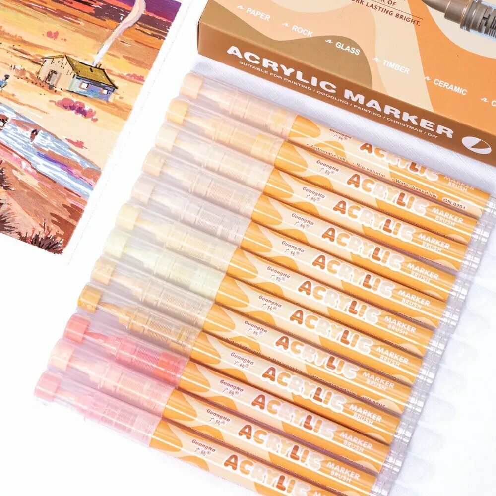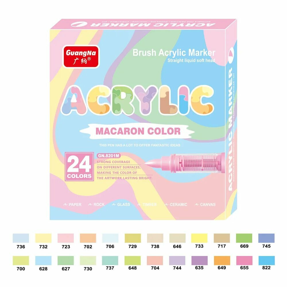 Акриловые маркеры на водной основе Guangna — это универсальный инструмент для творчества и дизайна. В наборе представлены 24 ярких и насыщенных цветов, которые позволяют воплотить самые смелые идеи и создать неповторимые произведения искусства. Благодаря своей водной основе маркеры безопасны для использования и нетоксичны, что делает их идеальными для детей и взрослых. Эргономичный четырёхгранный корпус маркеров обеспечивает комфортное использование и предотвращает скатывание со стола. Маркеры Guangna идеально подходят для иллюстрации книг, журналов, плакатов, открыток, а также для создания эскизов, картин, росписи по стеклу и керамике.