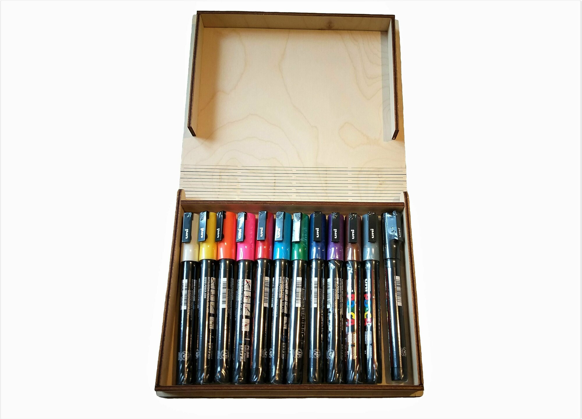 Набор маркеров Uni Posca PC-3m 12шт (Белый №1 жёлтый №2, оранжевый № 4, розовый №13, красный №15, голубой №8, зелёный №6, , синий №33, фиолетовый №12, коричневый №21, серый №37, чёрный 24) в себя включает