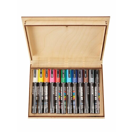 Набор маркеров Uni Posca PC-5m 12шт (Белый №1 жёлтый №2, оранжевый № 4, розовый №13, красный №15, голубой №8, зелёный №6, , синий №33, фиолетовый №12, коричневый №21, серый №37, чёрный 24) в себя включает