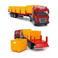Грузовики с прицепом шаланда, рассчитанные на детскую игру в транспорт и логистику, — это необходимость для маленьких любителей машинок! В комплект входит впечатляющий Фура-тягач яркого красного или солнечного желтого цвета с прицепом, на котором расположены пять ярких боксов-контейнеров. Эти контейнеры легко снимаются и открываются, что делает игру увлекательной и разнообразной. Каждая деталь фуры тщательно продумана и изготовлена с высоким качеством: металлическая кабина, настоящая подсветка фар и звуковые эффекты мотора создают атмосферу реальной дороги. Дизайн фуры, ее корпуса и прицепа выполнен с вниманием к деталям. Прорезиненные колеса с протектором обеспечивают отличное сцепление и плавный ход как на ровной поверхности, так и в песочнице. Прицеп с легкостью отстегивается, достаточно просто подвинуть специальный рычаг, как у настоящего седельного тягача. Кроме того, при необходимости, можно разложить опоры прицепа, создав материал для новой увлекательной истории в игре. Размеры данной модели идеально подходят для себя как для игр в помещении, так и на свежем воздухе: длина составляет 38 см, высота – 9 см, а ширина – 6 см. Каждая фура поставляется в красивой транспортной коробке, а также дополнительной упаковке, что делает ее идеальным подарком для ребенка, увлекающегося миром логистики и грузовиков. Игра с такими машинками не только развивает воображение и мелкую моторику, но и логическое мышление.