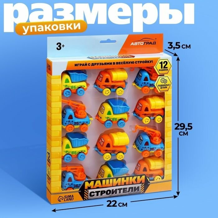 Купить Набор машинок Автоград «Машинки строители», 12 шт, подвижные детали (389) с доставкой по всей России. Набор машинок Автоград «Машинки строители», 12 шт, подвижные детали (389): сравнение цен, характеристики, фото, актуальное наличие и цены.