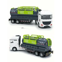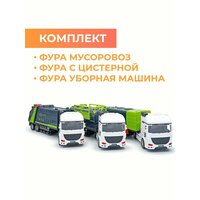 Набор фур тягачей с прицепами цистерна, мусоровоз и подметально-уборочная машина для мойки и уборки дорог. Реалистичные машинки грузовики с разными прицепами в одном комплекте — это отличный подарок, который придется по душе вашему ребенку. Машинки имеют встроенный инерционный привод, прорезиненные колеса и функциональные прицепы. Цистерна Тягач игрушка для перевозки жидкостей, воды, бензина- бензовоз, молока, как молоковоз и др. с белой кабиной и черно зеленым баком на прицепе. На цистерне проработаны различные мелкие детали, поручни, люки и лестницы для доступа к ним. Подметально-уборочная машина, Белый тягач, с черно зеленым прицепом. Прицеп на подвижном шарнирном механизме как настоящий. На прицепе проработаны элементы дизайна, такие как автоматические метла, решетки охлаждения и люки на крыше. Мусоровоз, грузовик с прицепом игрушка для перевозки и утилизации отходов. Одна из самых любимых моделей у детей. Яркий представитель коммунальных служб. Прицеп очень функциональный и интересный, на прицепе открывается верхний люк контейнера для доступа к содержимому, которое может придумать сам ребенок, открывается задний борт с красным мусорным контейнером. Машины с прицепом, это набор, который отличается своей наполненностью он поможет ребенку развить фантазию и моделировать различные сцены игр.