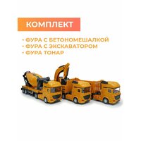 Купить Набор машинок с прицепом Фура экскаватор, Седельный тягач бетономешалка, грузовик самосвал. с доставкой по всей России. Набор машинок с прицепом Фура экскаватор, Седельный тягач бетономешалка, грузовик самосвал.: сравнение цен, характеристики, фото, актуальное наличие и цены.