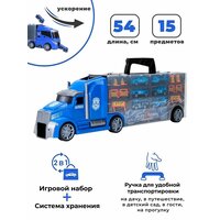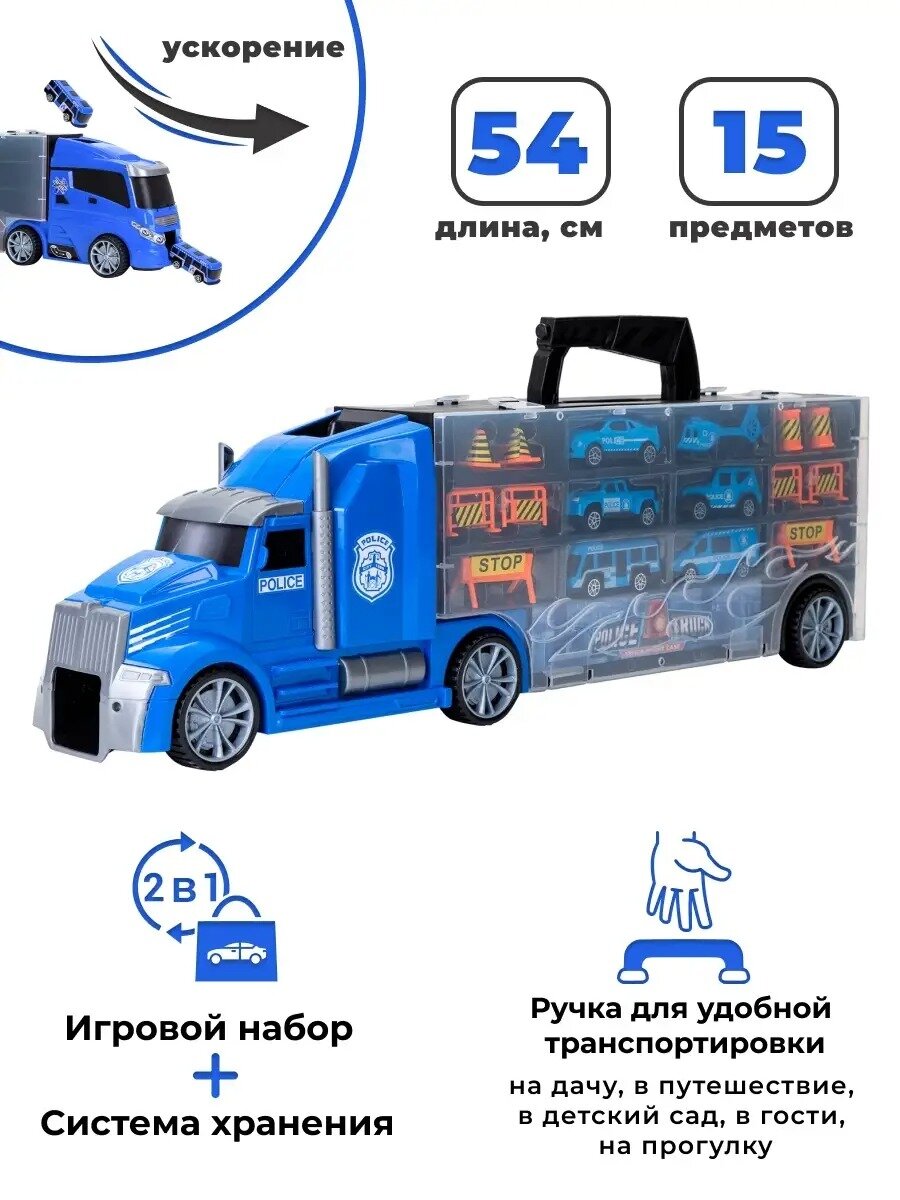 Купить Набор машинок «Полицейский участок» (Автовоз — кейс 54 см, с тоннелем. 4 машинки, автобус, вертолет и дорожные знаки) с доставкой по всей России.