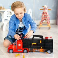 Купить Набор машинок серии «Служба спасения» (Автовоз — кейс 54 см, красный, с тоннелем. 4 машинки, 1 автобус, 1 вертолет и 10 дорожных знаков) G205-015 с доставкой по всей России.