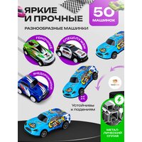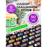Набор машинок в боксе содержит 50 металлических машинок, каждая из которых выполнена из качественных материалов: металла, резины и пластика.