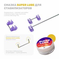 Масло Super Lube — не позволяет стабилизаторам испортить впечатление от сборки. Избавляет клавиатуру от дребезга и лязга во время нажатия на длинные клавиши.