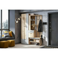 Удивительно функциональная и практичная прихожая Фаворит 1, обладая характерными чертами Скандинавского стиля, выглядит эффектно и способна задать тон интерьеру дома, встречая вас и ваших гостей. Если вы цените изящность простых линий, отсекающих все лишнее, экологичность натуральных материалов и естественные оттенки в своем окружении, вы найдете все это в представленном гарнитуре. Эта прихожая является готовым решением для интерьера и идеально подойдет как в малогабаритную прихожую, так и в качестве части комплексной обстановки. Ее конструкция имеет все необходимое: - крючки для верхней одежды и полка для головных уборов; - вместительный платяной шкаф, в котором есть стальная выдвижная штанга для одежных вешалок; - закрытая обувница с барной створкой на газлифте и открытые ниши, которые также можно использовать для размещения обуви. - большое зеркало, торцевые полки и выдвижной ящик для средств по уходу и аксессуаров. При создании использовались исключительно экологически безопасные и качественные материалы и фурнитура, что гарантирует долговечность изделия, удобство эксплуатации и легкий уход за поверхностью. Ширина: 142 см Высота: 205.6 см Глубина: 35.2 см Вес: 75 кг Материал корпуса: ЛДСП, цвет Дуб Делано. Материал фасада: ЛДСП, цвет Цемент Светлый. Зеркало: цвет Серебро. Ручки: Скоба, цвет черный. Опоры: Пластик. Тип сборки: Универсальный.