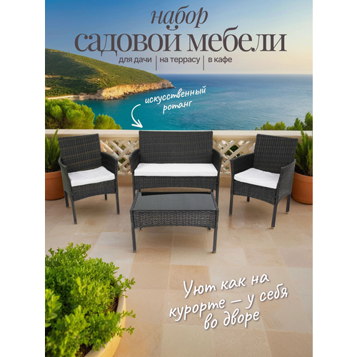 Набор мебели «Доминика», Комплект садовой мебели для 4 человек, искусственный ротанг/металл/текстиль: сравнение цен, характеристики, фото, актуальное наличие и цены.