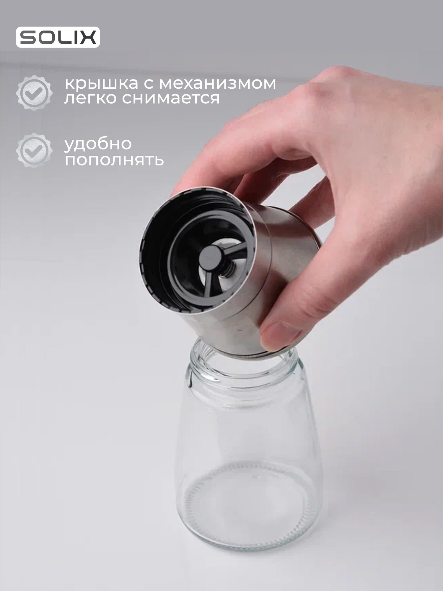 | Дополнительная информация | Мельница: Керамические жернова для перемалывания специй, корпус из пластика. Стеклянную банку и съемный пластиковый корпус можно мыть в посудомоечной машине, а остальные части мельницы рекомендуется мыть вручную. |