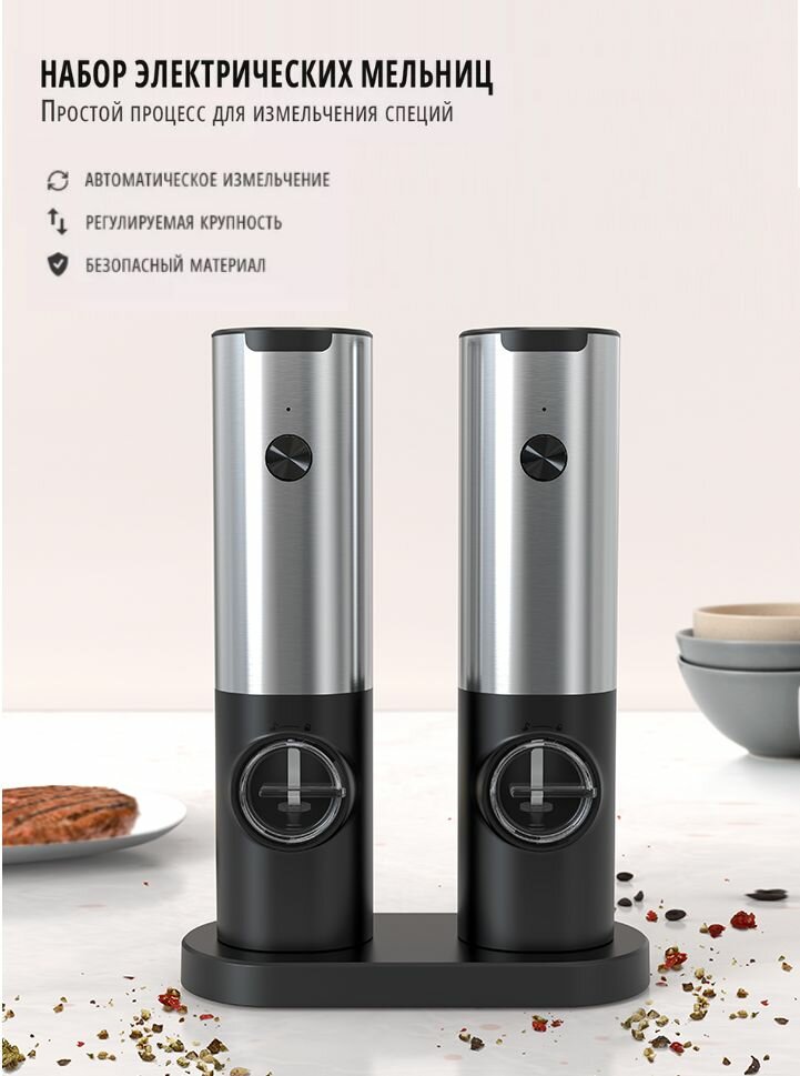 Набор Мельниц для специй электрический с USB Type-C, KYMQ-17С для соли, перца и других специй: сравнение цен, характеристики, фото, актуальное наличие и цены.