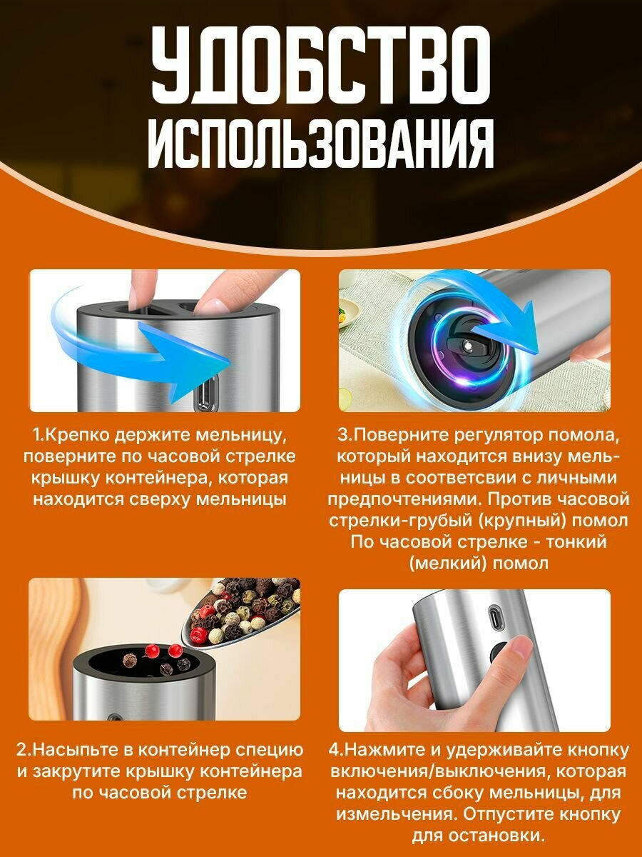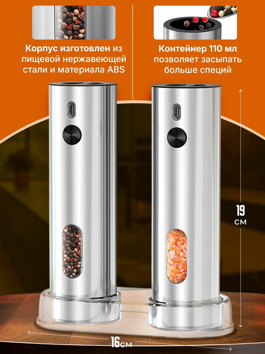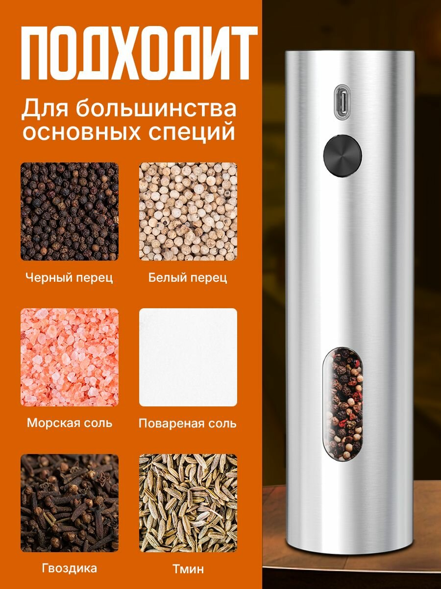 Купить Набор Мельниц для специй электрический с USB Type-C, KYMQ-67A-BS для соли, перца и других специй с доставкой по всей России.