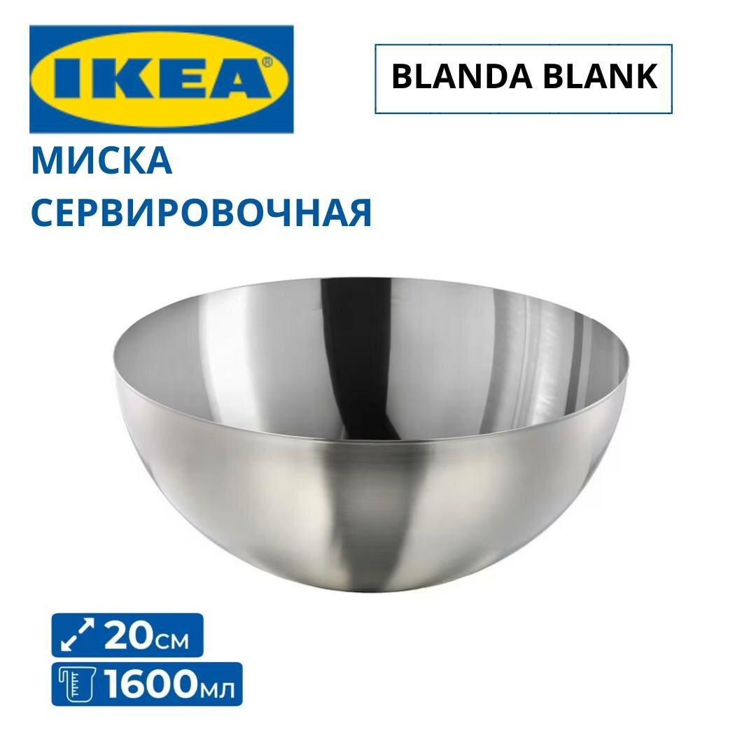 Глубокая железная миска IKEA Бланда Бланк из нержавеющей стали — это многофункциональный и практичный кухонный аксессуар. Миска изготовлена из высококачественной нержавеющей стали, что делает её долговечной и устойчивой к повреждениям. Она проста и естественна по дизайну, но при этом многофункциональна. Миска идеально подходит для перемешивания ингредиентов, использования на кухне дома и на природе на даче. Её легко мыть, в том числе в посудомоечной машине.
